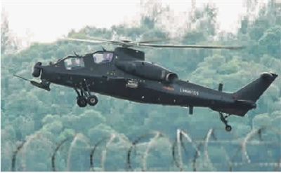 据现场实景推测,武直-10属于中型专用武装直升机,配备2台大推力涡轴发动机,机体采用串列式双座布局,机身中部两侧带有短翼,每侧短翼安置2个武器挂点,可携带激光制导反坦克导弹、制导火箭巢乃至对空格斗导弹。