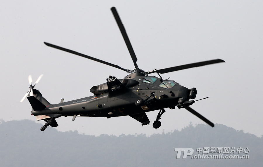 11月13日,我国自主研制生产的武直-10武装直升机亮相在珠海举行的第九届中国国际航空航天博览会,在飞行表演中展示了这款直升机的优良性能。记者乔天富 摄(来源:中国军网)