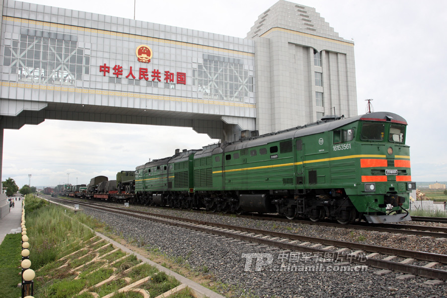 参加“和平使命—2013”中俄联合反恐军事演习第一列地转专列开出国门。曹占礼 摄