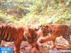 野外实拍:印尼苏门答腊虎玩耍