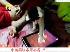 猫咪也玩IPAD 《水果忍者》分数高