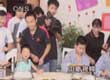 同期声:(手指书法家胡文富:不管男的女的老的少的要健康首先要常乐。。。。)