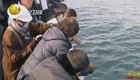 男子发现鸭子被冻湖面 跳湖破冰救援