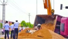 卡车侧翻压烂轿车 40余人扒沙救人