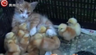 20只小鸡误认小猫当妈妈