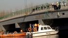 拍客:汽车坠桥被淹 3人遭困遇难