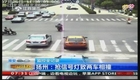 监拍:电动车抢红灯 撞上行驶轿车