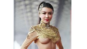 龚玥菲半裸爆乳披黄金甲获封第一车模