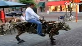 牛人骑自制机器老虎逛街