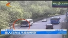 实拍路人狂奔过马路被撞飞