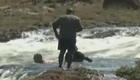 男子发现鸭子被冻湖面 跳湖破冰救援