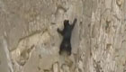 实拍:小熊攀上陡峭岩壁追寻母亲