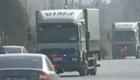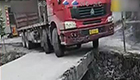 实拍大货车转弯过窄桥