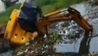 挖掘机陷入沼泽 司机最后关头逃生