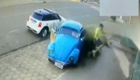 男子纵身一跃避过失控轿车