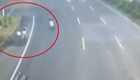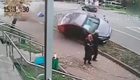 失控轿车与行人擦肩而过