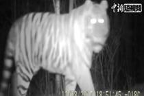 吉林天桥岭现虎踪 在监测相机前悠然走过