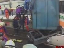 实拍台湾一列车与货车相撞现场 撞出200米远