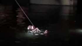 男子发现鸭子被冻湖面 跳湖破冰救援
